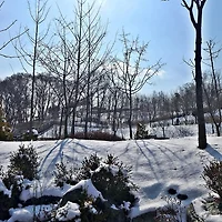 약간 운치 있는 바위와 나무와 바위를 덮은 온더 스노우.......